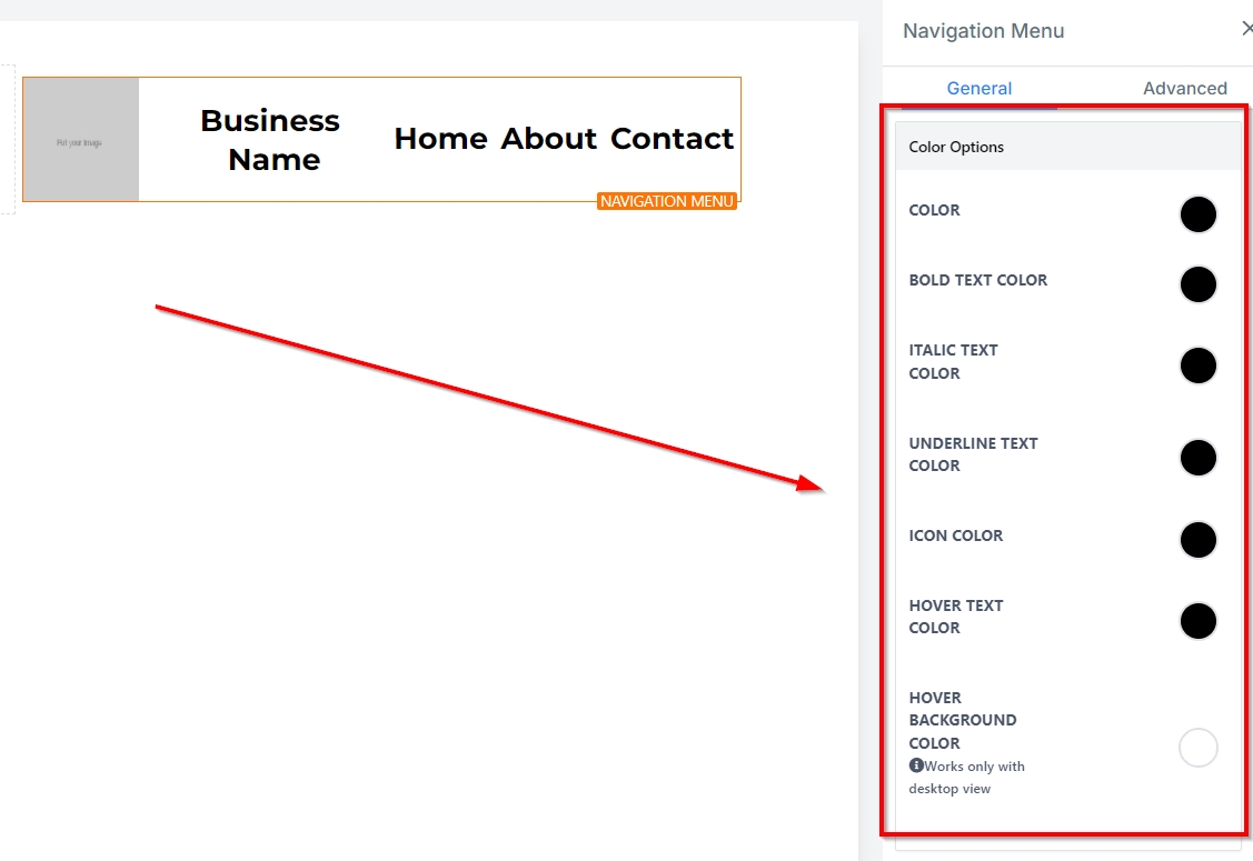 If the navigation menu's text is not visible against the background, adjust the text color or the background color for better contrast.