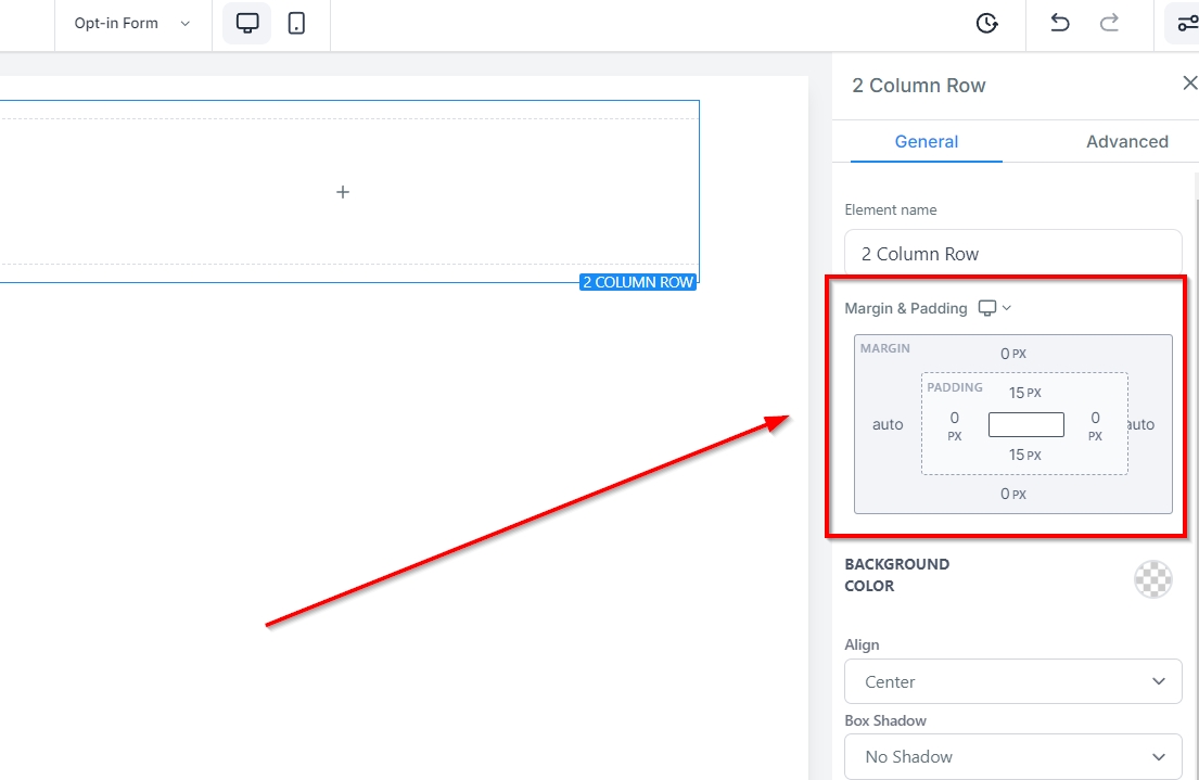 Adjust the padding of the row and section to ensure the content is well-spaced.