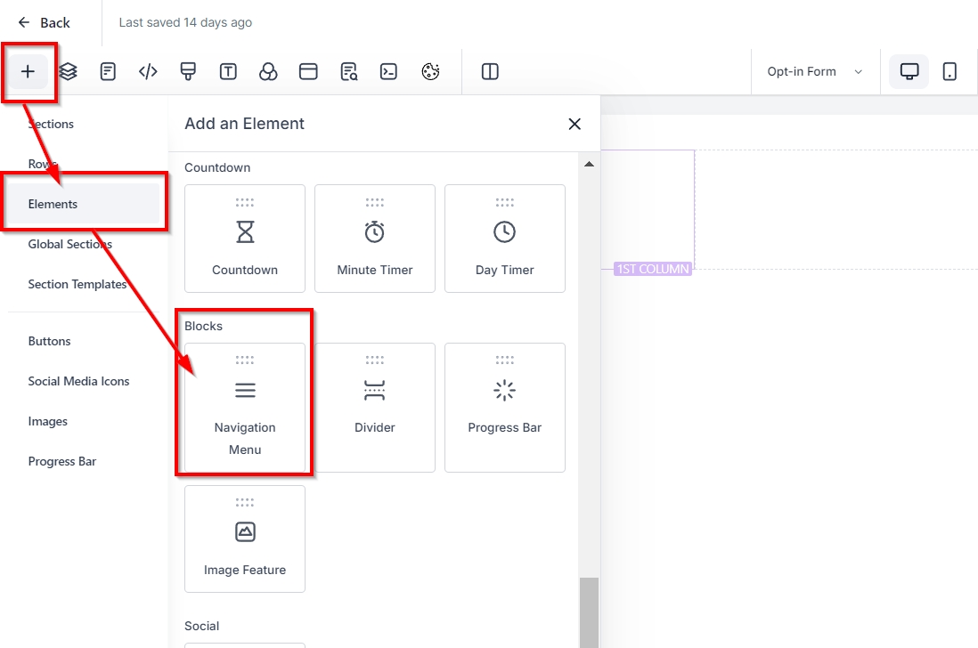 Inside this section, add a row that will house your header elements. For a balanced look, a two-column row is recommended.