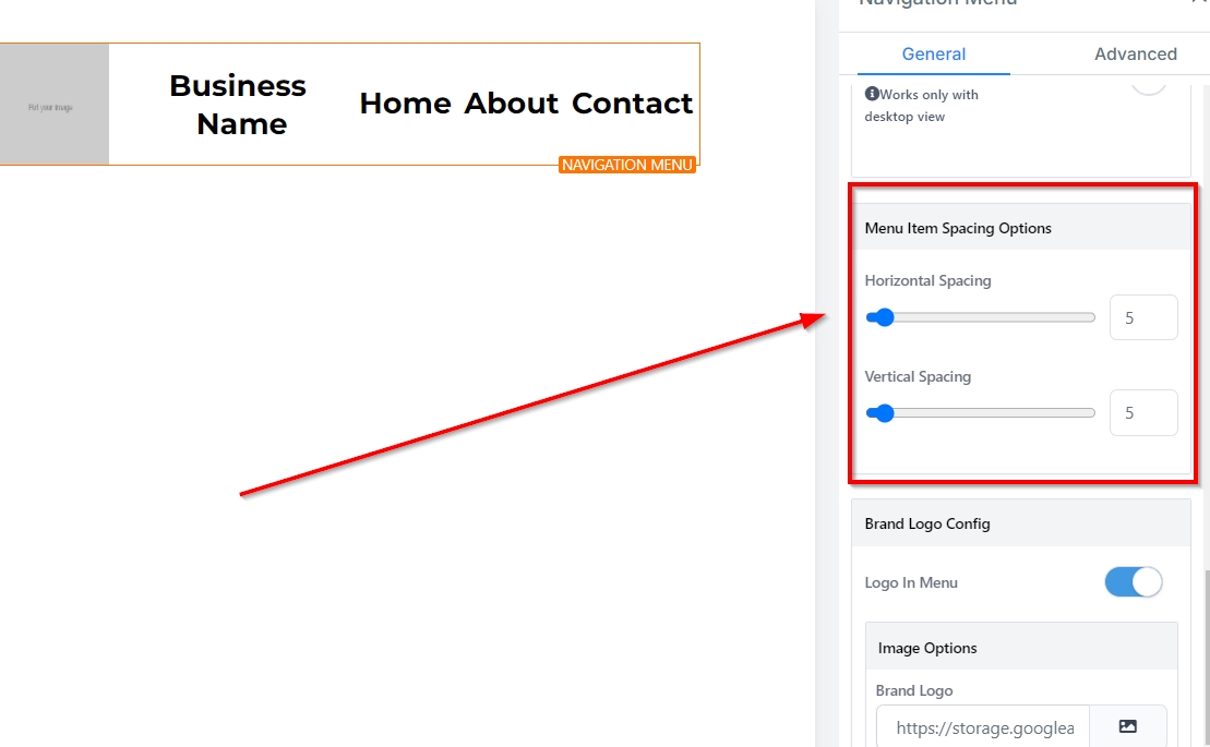 Customize the navigation menu by removing the default business name and logo, as your logo is already in place.