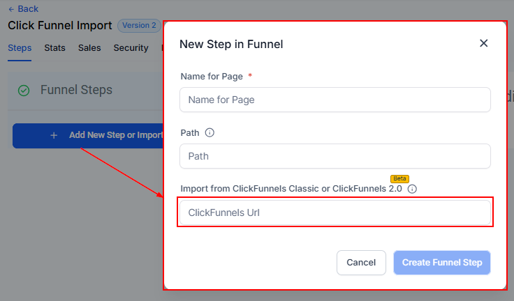 📌NOTE: Use the publishable (live) link, not the shareable ClickFunnels link. Importing one Funnel Step at a time from ClickFunnels ensures a smooth experience.