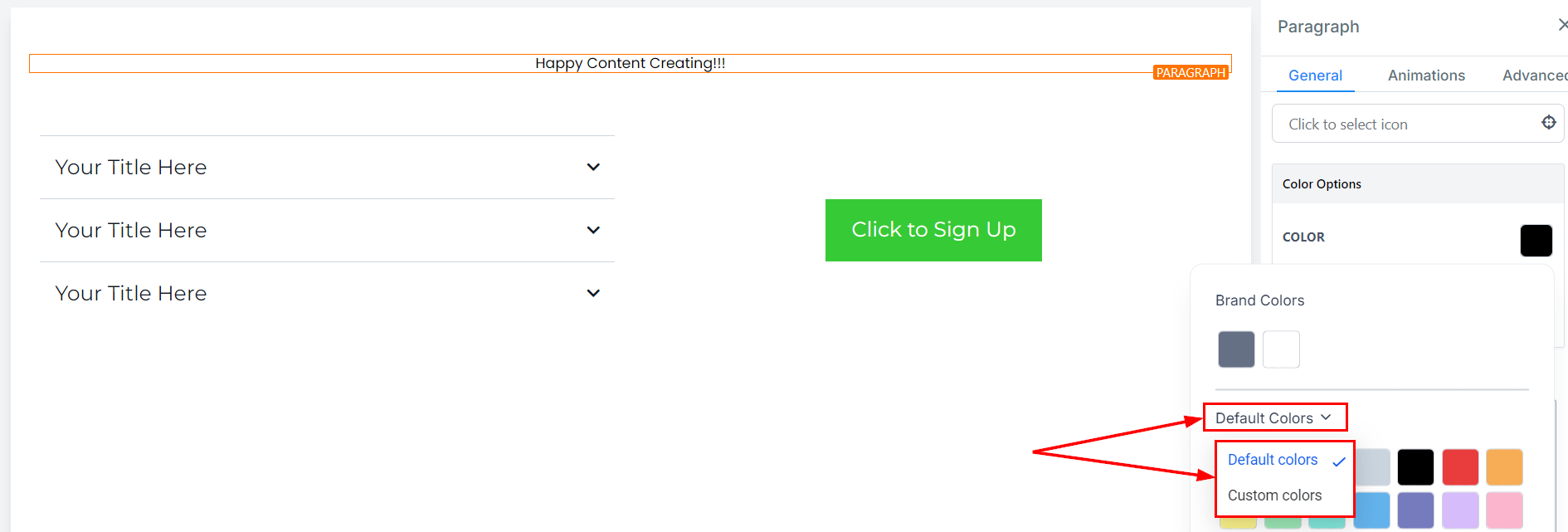 Accessing the Color Palette