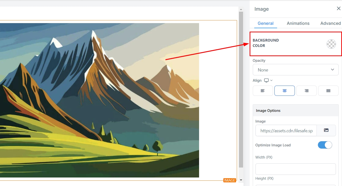To change the background color of your image element, click on the content area you wish to adjust. You can then select a color from the provided options or enter a custom color code to match your branding.
