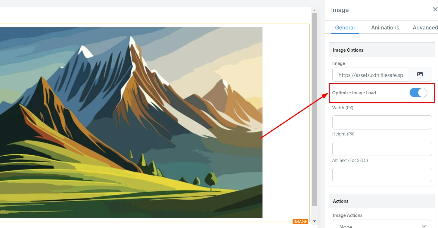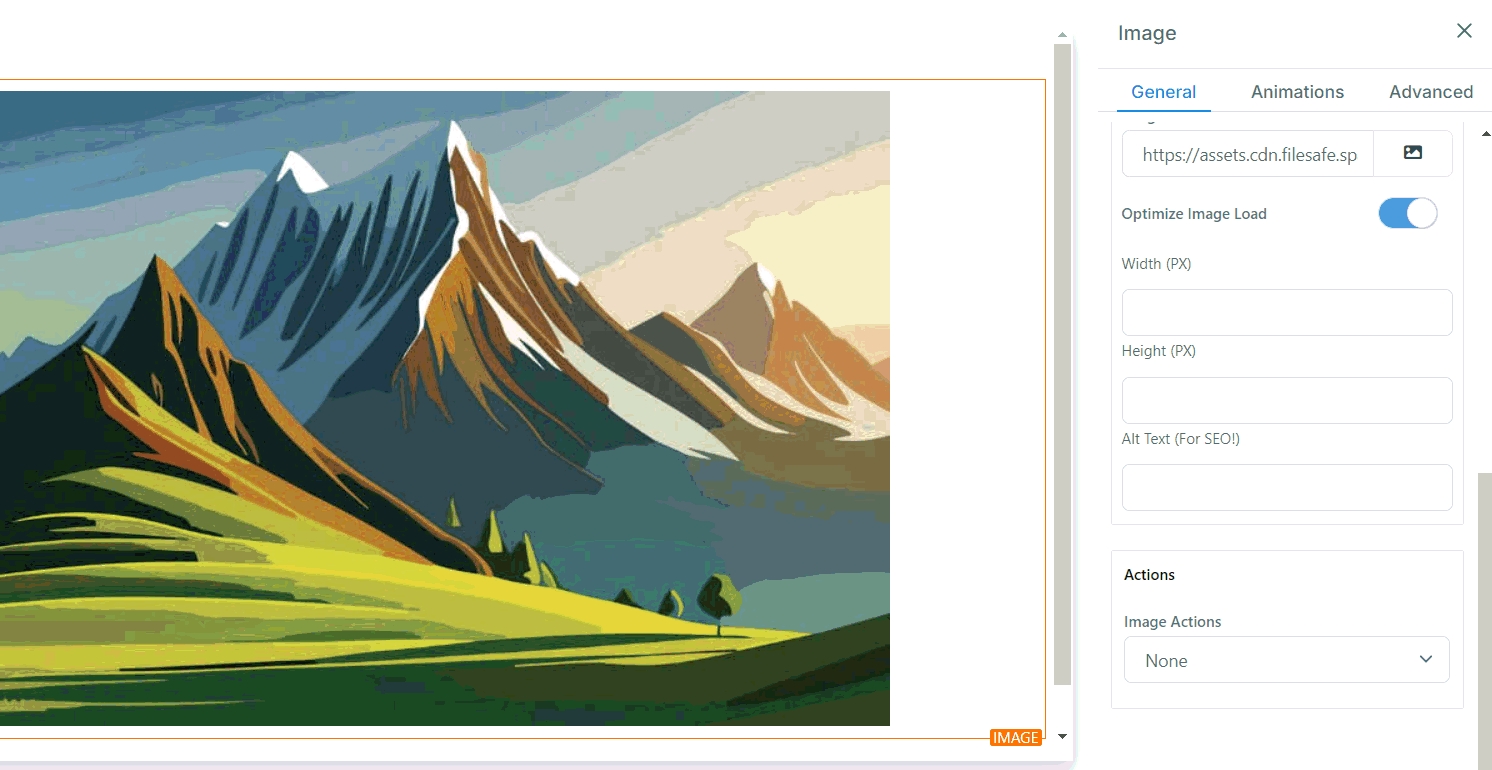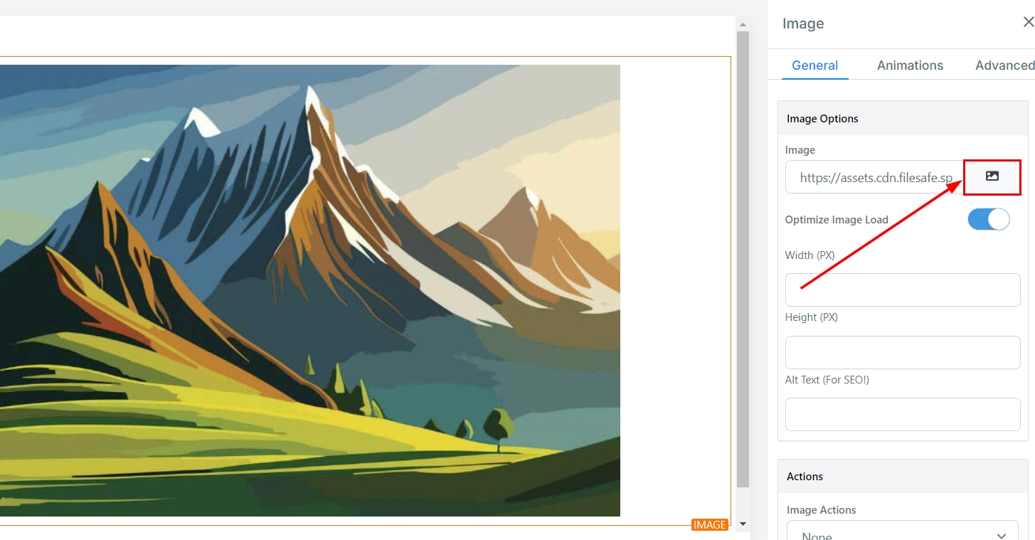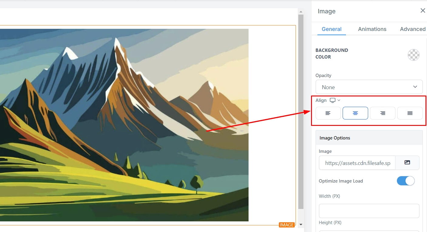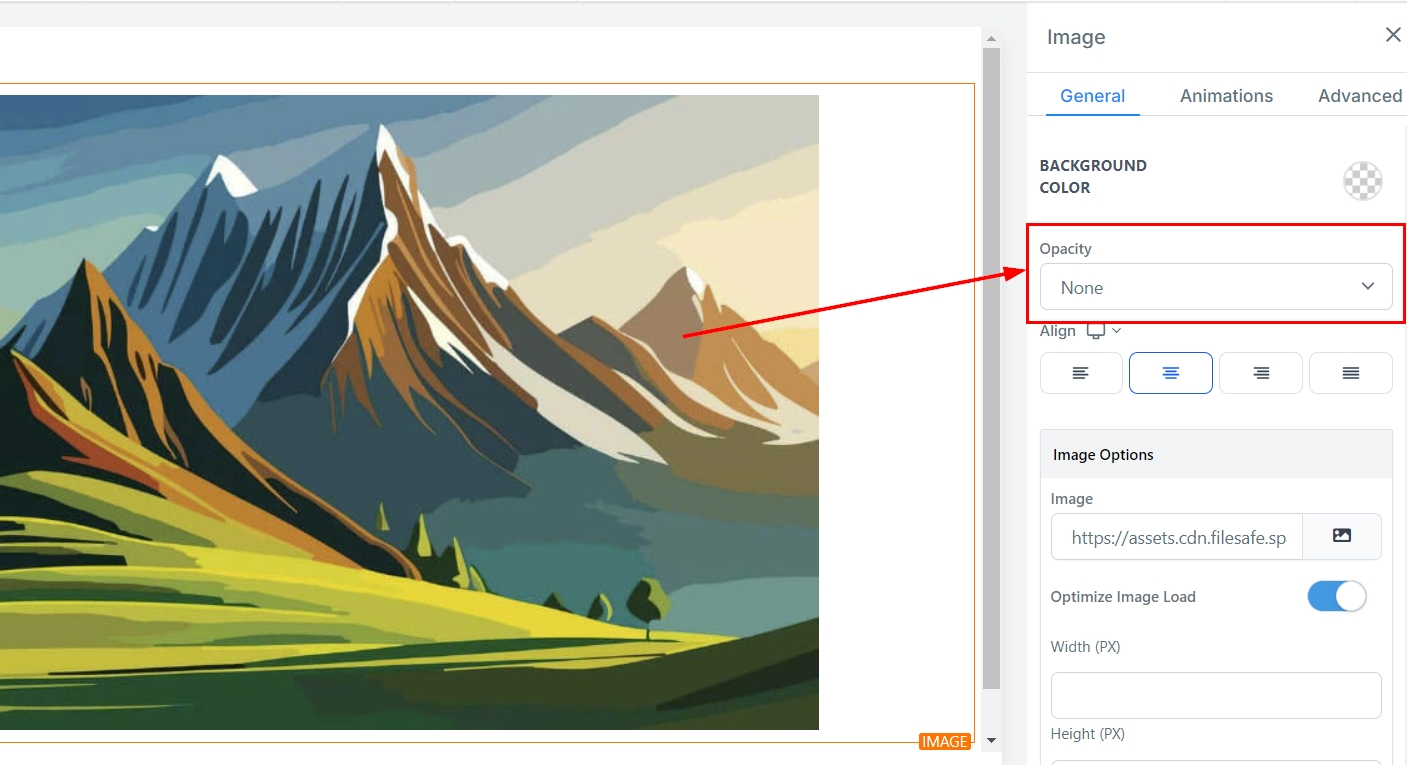 When editing the image element on your funnel page, most adjustments can be made in the General Settings section located to the left.