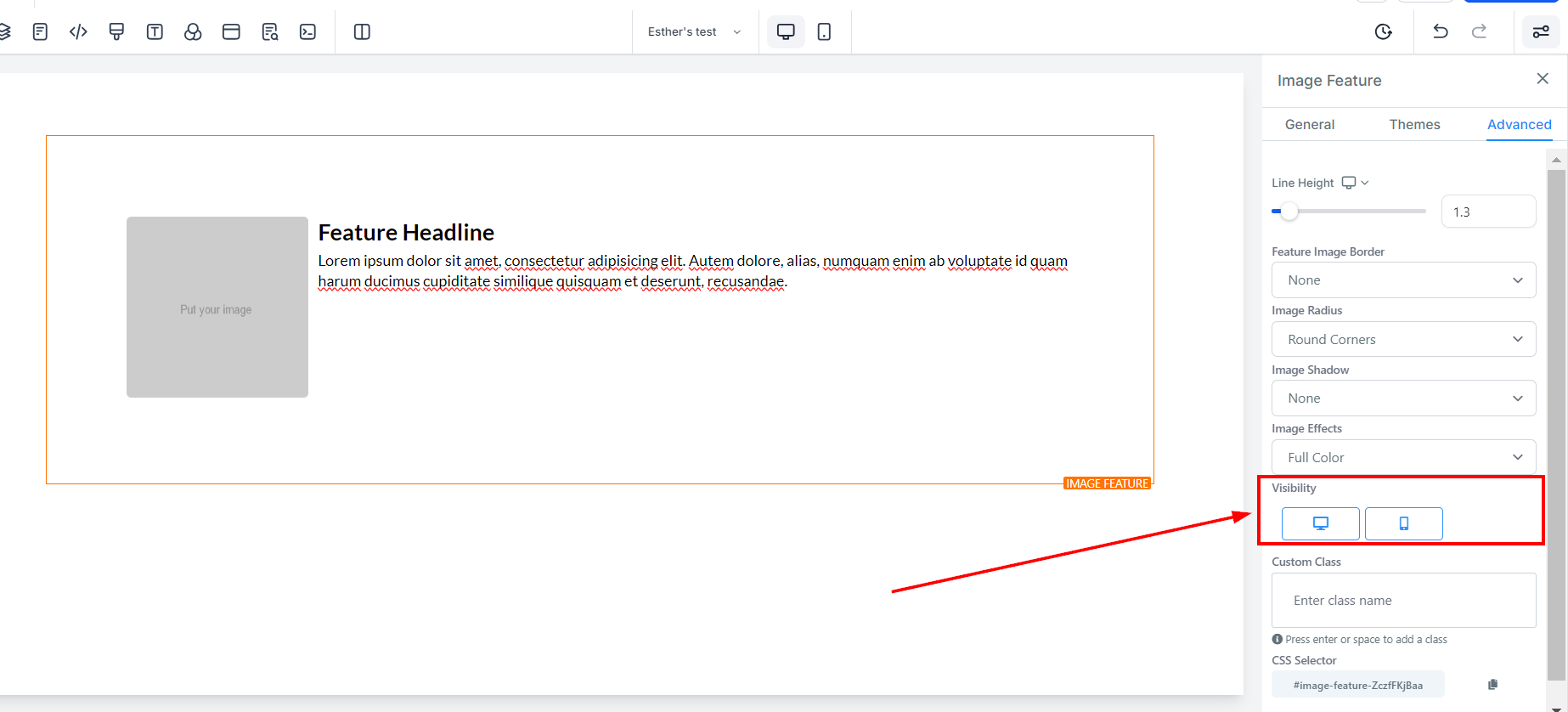 Under Visibility, you can choose whether you want this specific editing option to be visible on mobile devices, desktops, or both. Simply click on the icon to highlight it based on your preference.