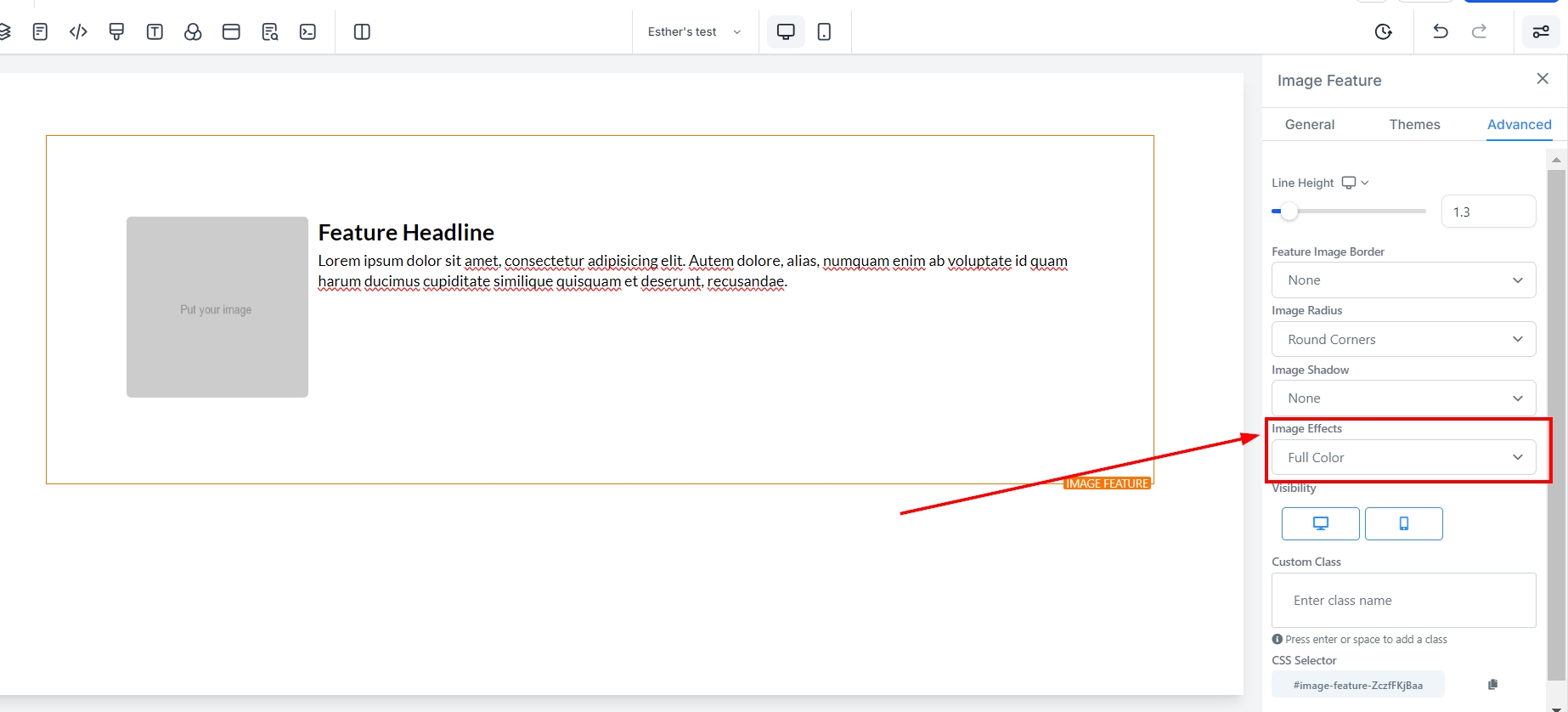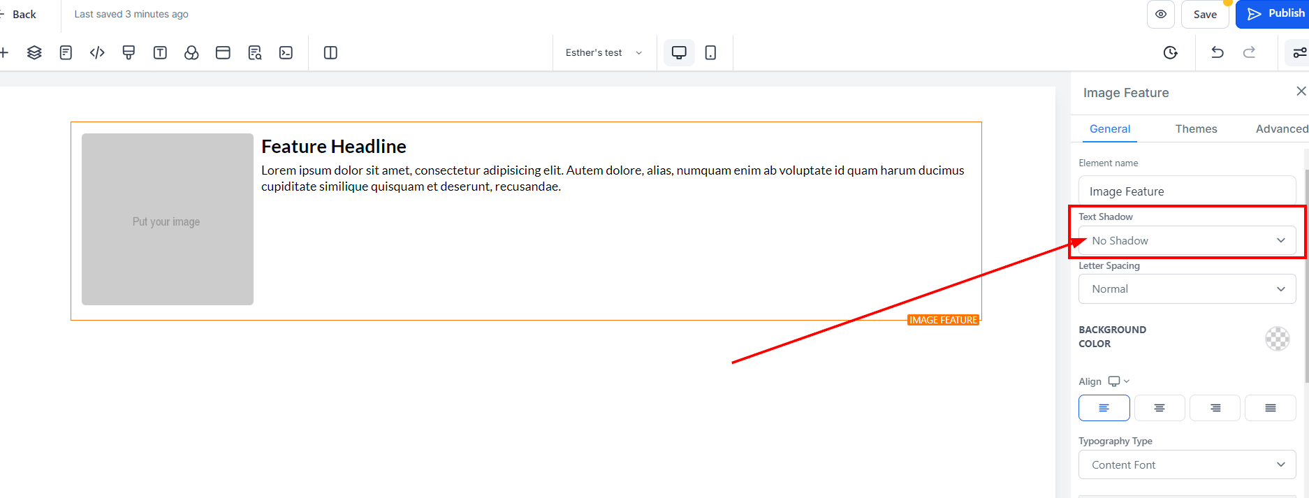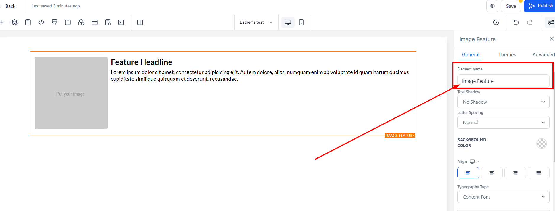 To modify the background color of your Image feature, select the content you wish to adjust and click on it.