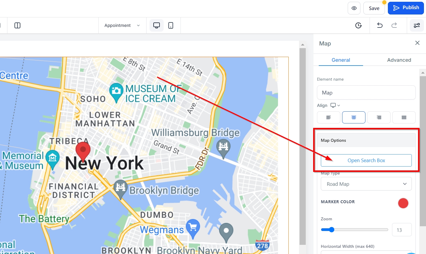 Do you want to add your business location to your website? If so, then the Map Element is your go-to feature! It gives website visitors a convenient spot to see where exactly you are located. You can choose from a variety of different map display options for personalization, ensuring that it looks great on your site's design. With the Map Element, let website visitors easily locate your Business with just one glance!