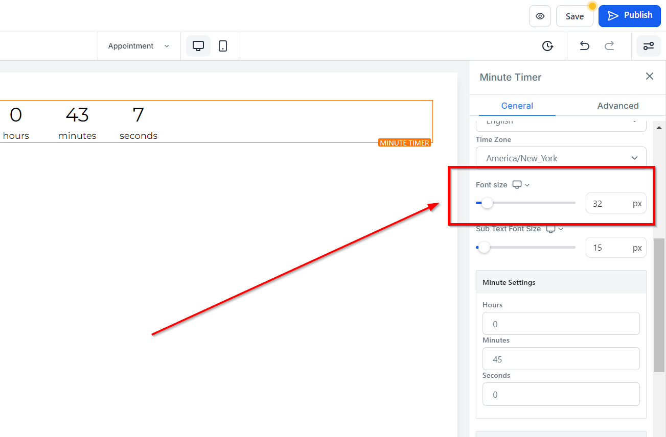 To adjust the font size of your timer for both mobile and desktop devices, you can use the Mobile and Desktop Font Size feature to customize accordingly.