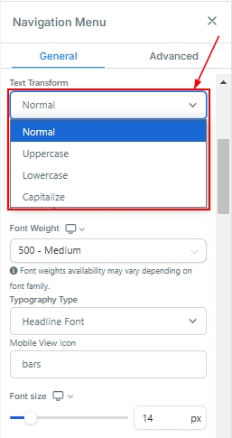 Using the Text Transform feature, you can change the text format to Uppercase, Lowercase, or capitalize each word. This customization allows you to modify the text style for enhanced visual appeal and readability.