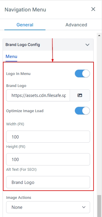 Width and Height: In this Width and Height section, you can adjust the width and height of your brand logo to the desired size to fit your menu. You may need to play around with different combinations of numbers to get the right fit.