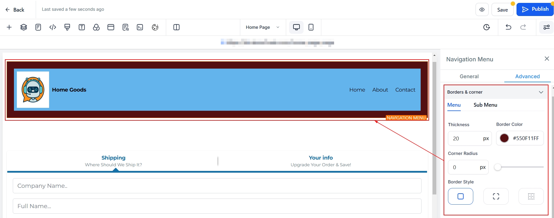 This feature allows you to add a shadow behind an element, creating a sense of depth and making the navigation menu stand out more prominently against the background.