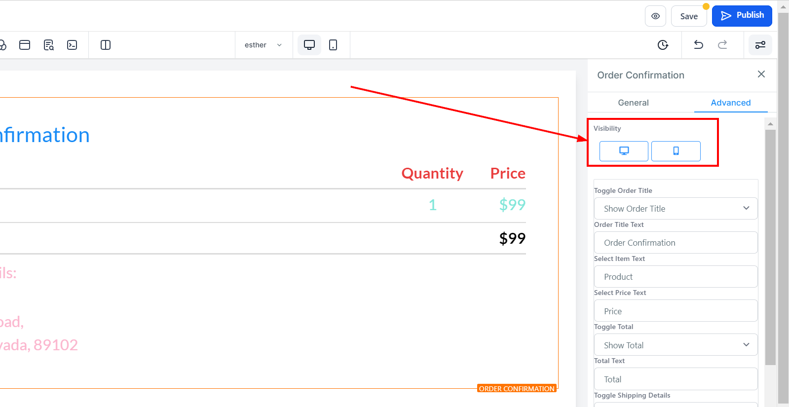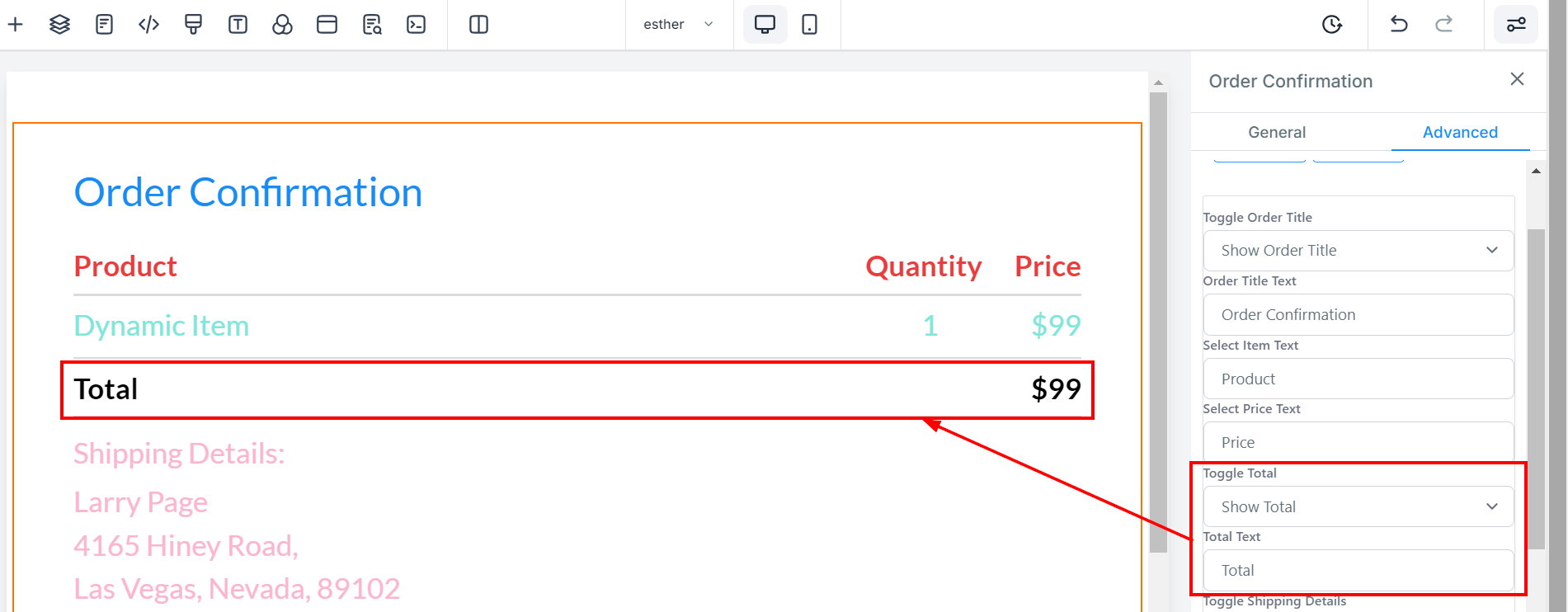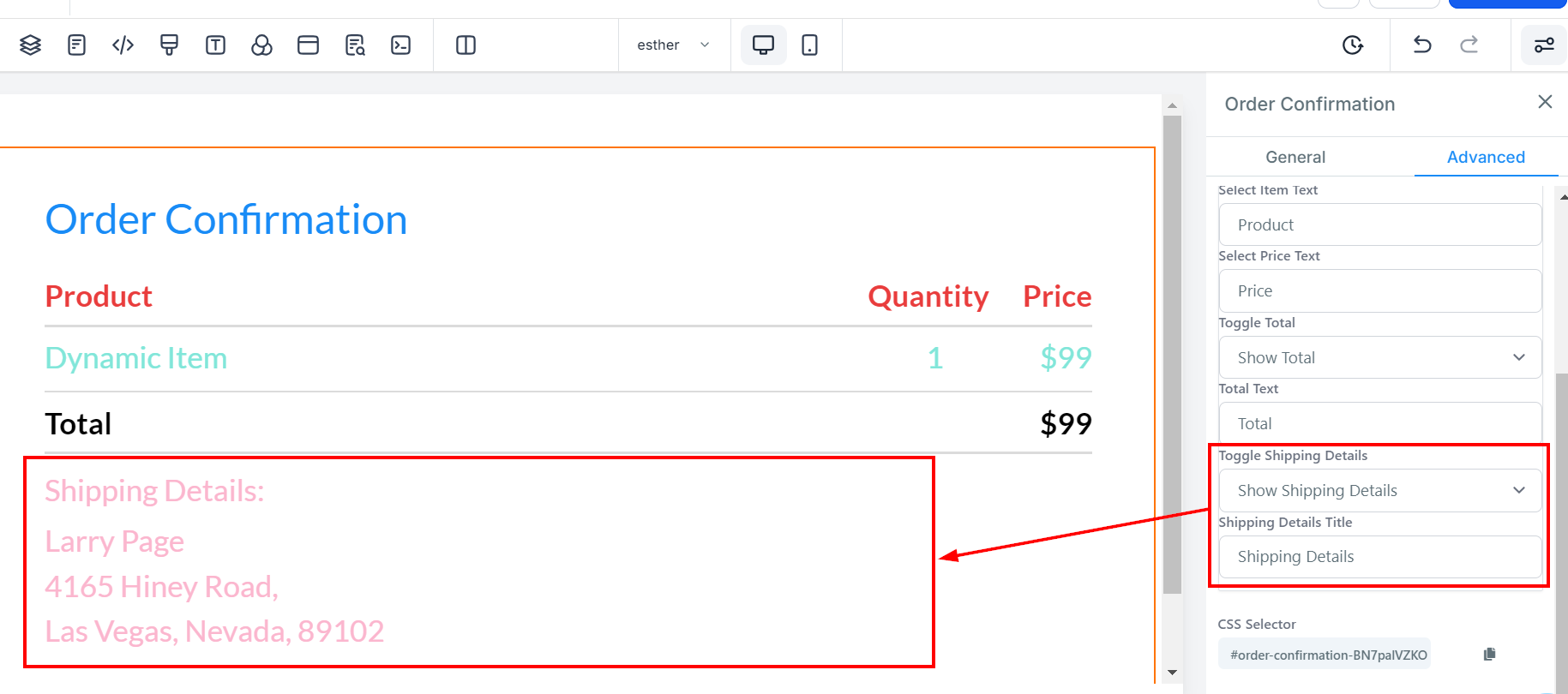 The Order Confirmation element allows you to add an order confirmation to your funnel page. This is useful when taking orders in a previous funnel page, and having a confirmation page be your next funnel step. When you add this element, you will notice a variety of customization options on the left-hand side of the builder.