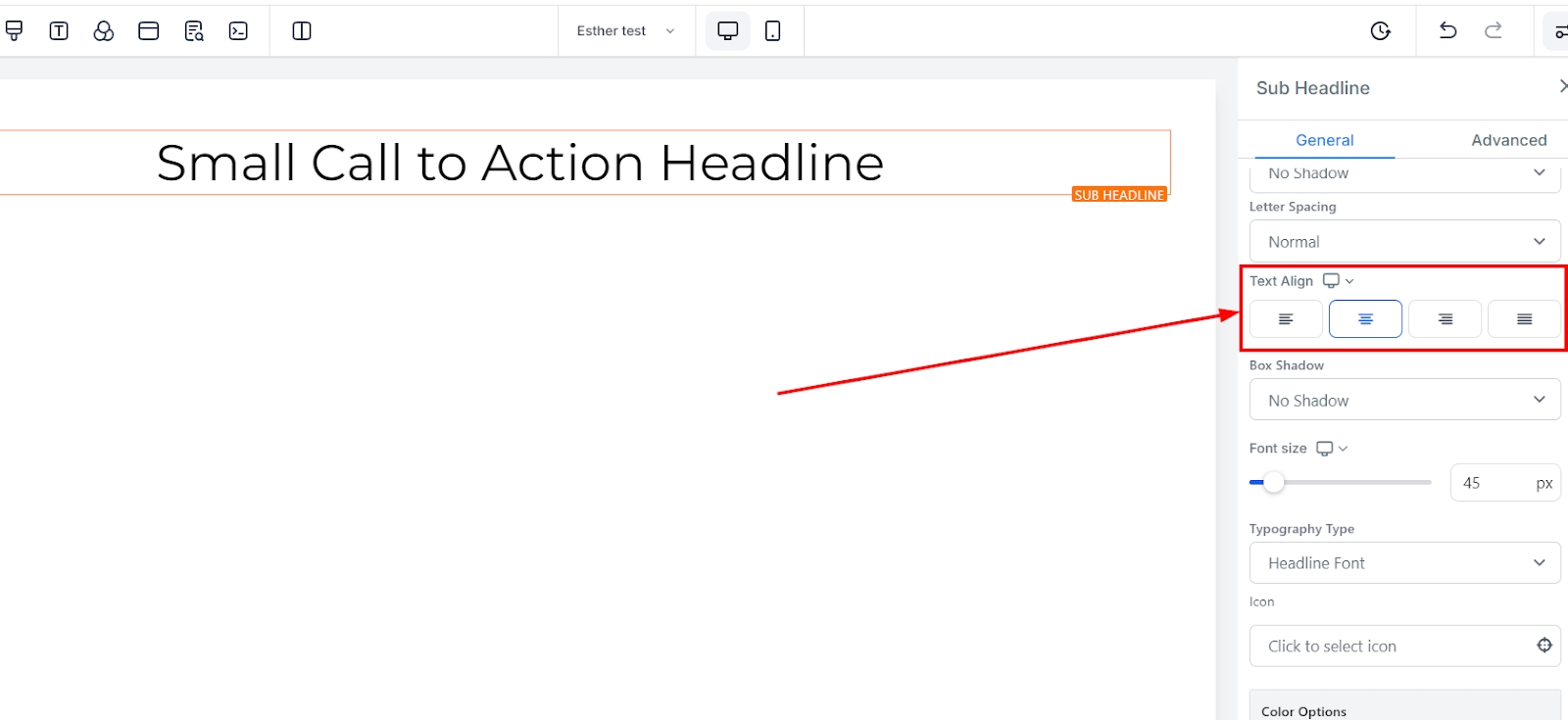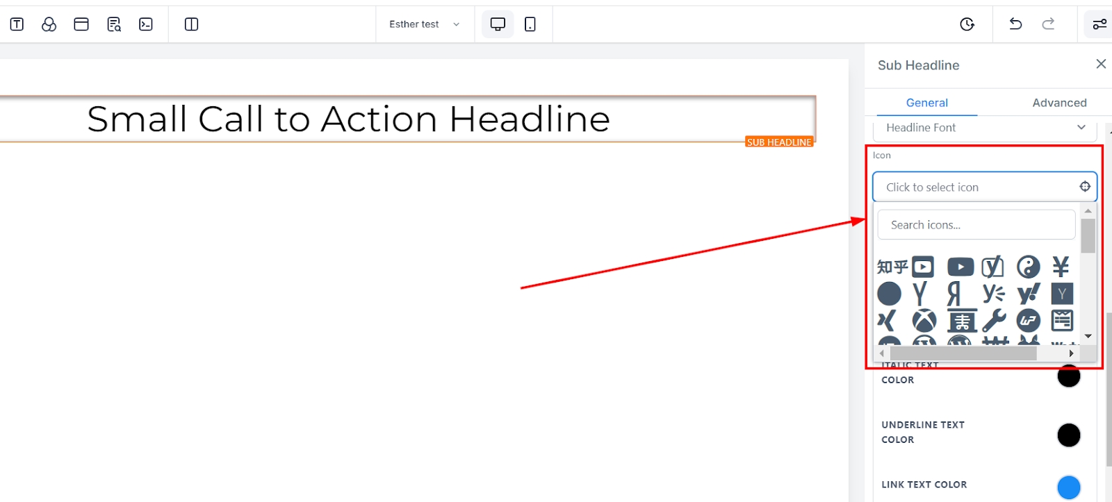 If you have an icon added to this page, you can only edit the icon color here. Only the icon color will change regardless of the position it's placed.