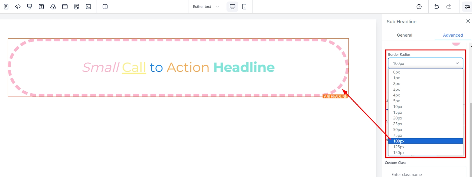 To add a Custom Class, simply fill in the Custom Class field with your desired class name.