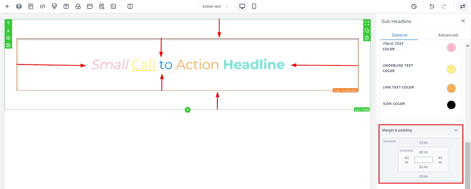 You can modify font size for mobile and desktop devices by using size bars for each text or content element. Toggle between mobile and desktop views in the top left corner of your funnel builder to see how your edits will appear on each platform.