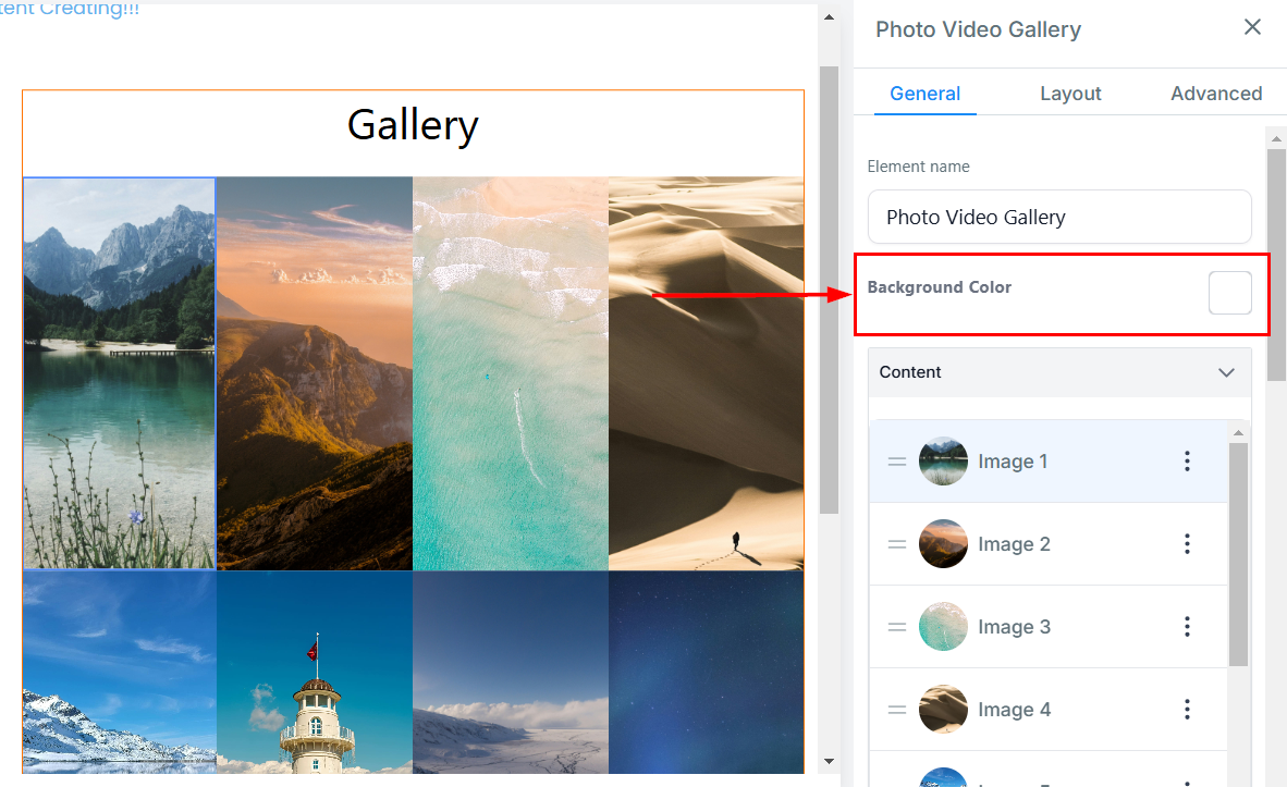 The Photo Gallery element is designed to help users effortlessly create professional and visually appealing galleries without requiring technical expertise. Perfect for showcasing visual content on websites and funnels, this element enhances user engagement and aesthetic appeal through advanced features such as lightbox functionality, lazy loading, and customizable layouts.