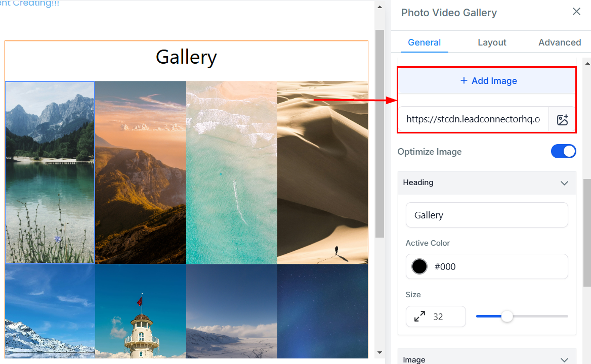 Heading Option: Add a custom heading to your gallery to provide context or highlight branding.