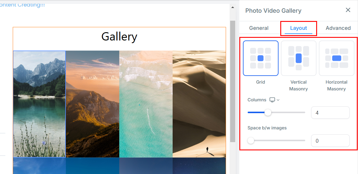Column Control: Customize the number of columns for your gallery to suit your design.