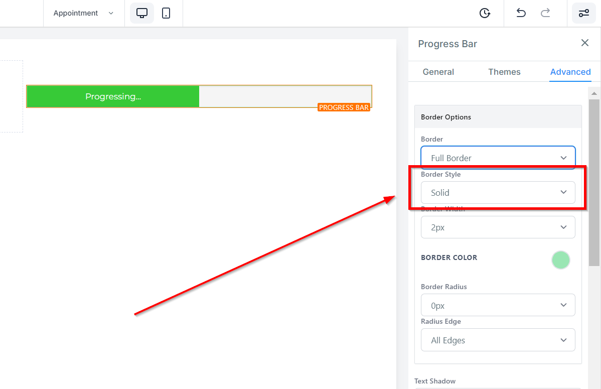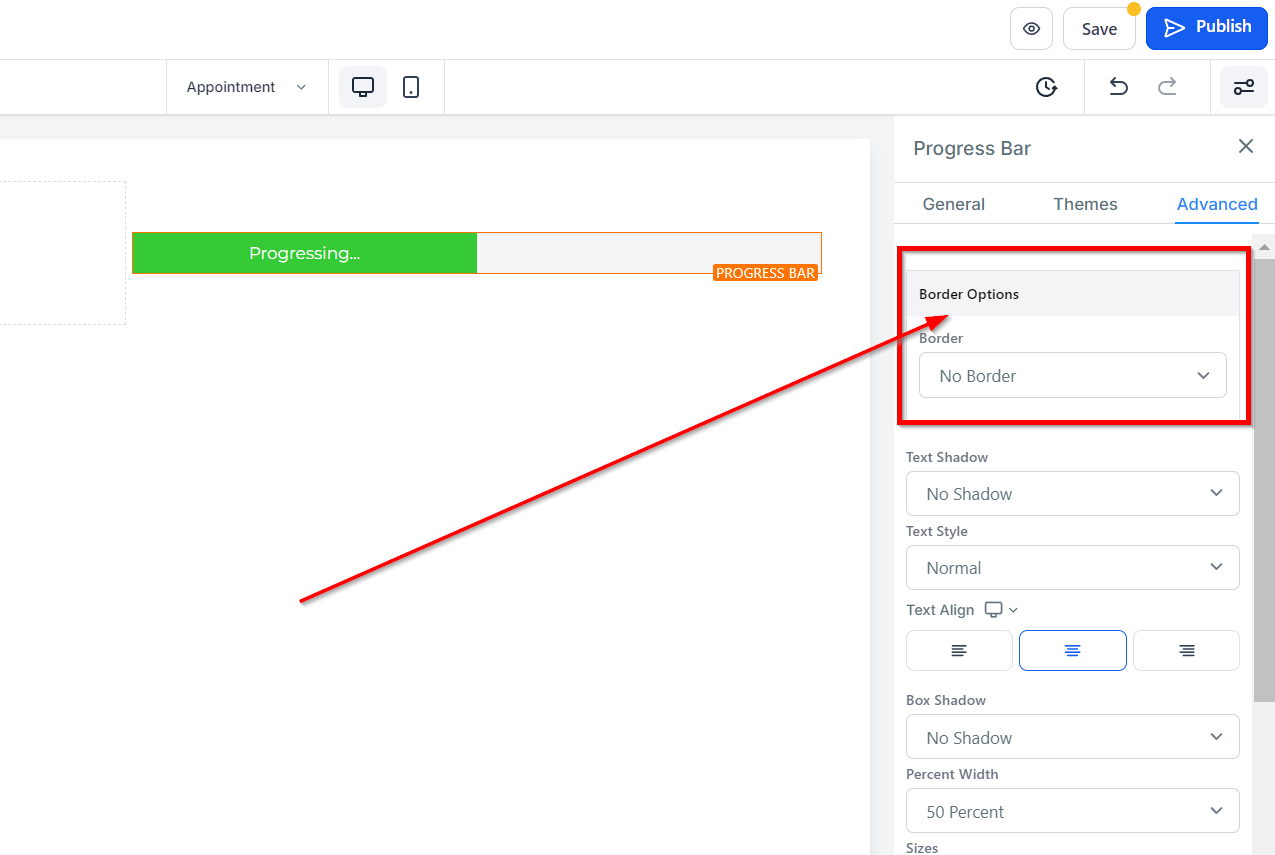 Border Under the Advanced Settings tab, you will find the Border Option feature. Here, you can decide what type of borderline you want by selecting any option besides No Border, which will drop down more border styling options.
