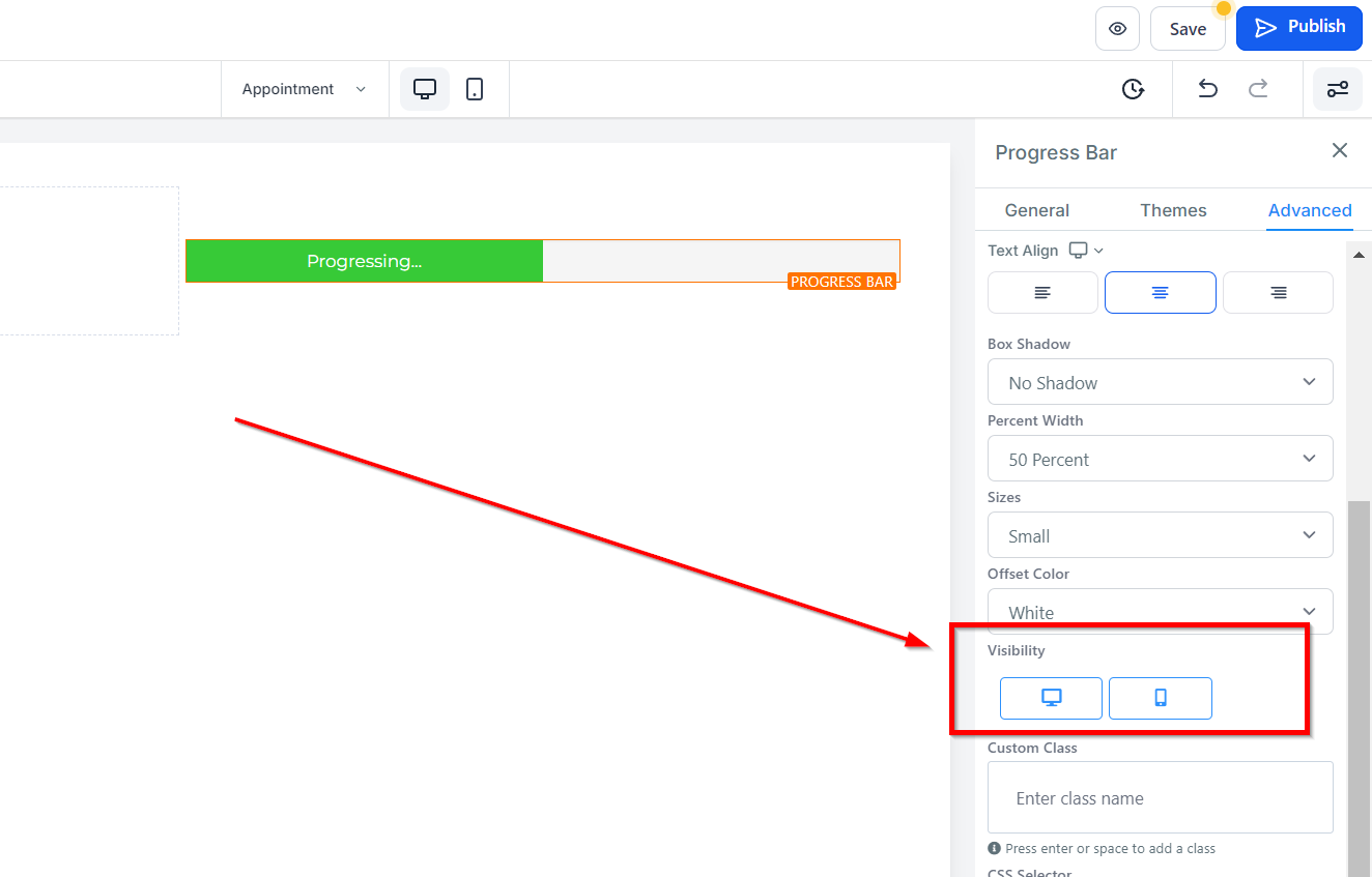 Under the Visibility option, you can choose whether to make a particular edit option visible on mobile devices, desktops, or both by clicking on the corresponding icon.