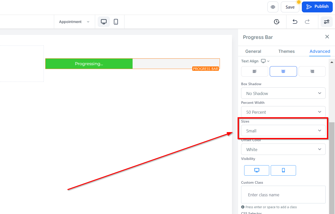 You can also select the height of your progress bar with the Sizes dropdown. Your options here are small, medium, and large.