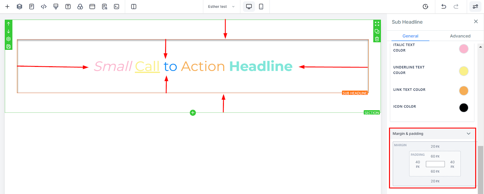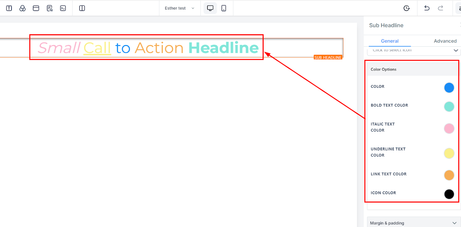 To change the sub-headline background color, click on the content you want to adjust and choose the desired color.