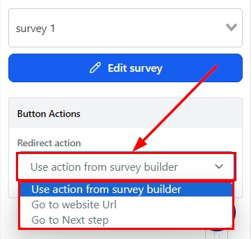 Use action from Survey Builder: The button action configured in the survey builder will be performed.