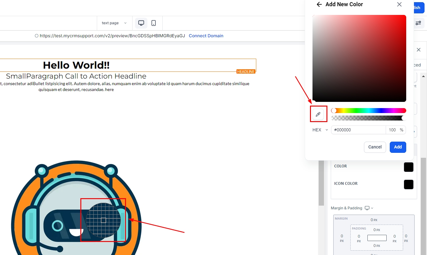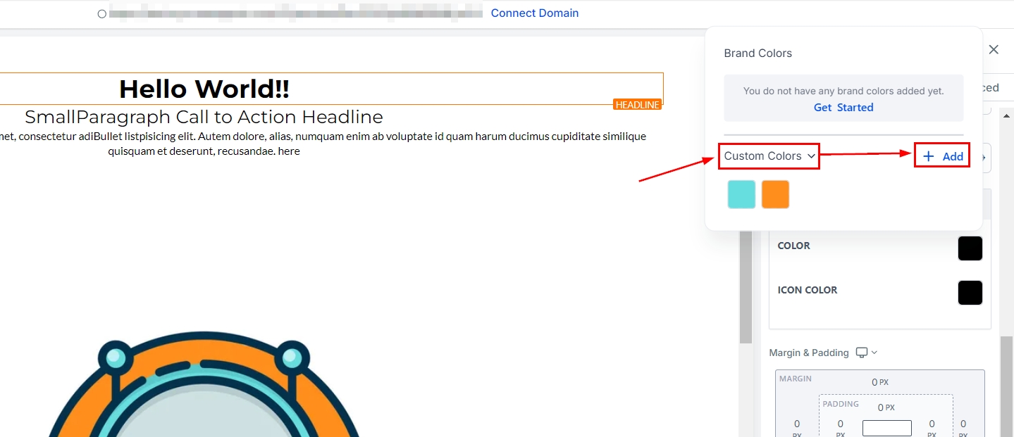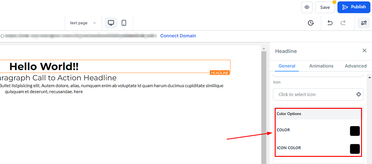 By scrolling down you can change the color options for the overall text and icons of your text element in that funnel/website.