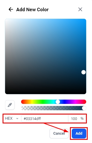If you need a specific color but don't have the hex code for it select custom colors then click + Add.