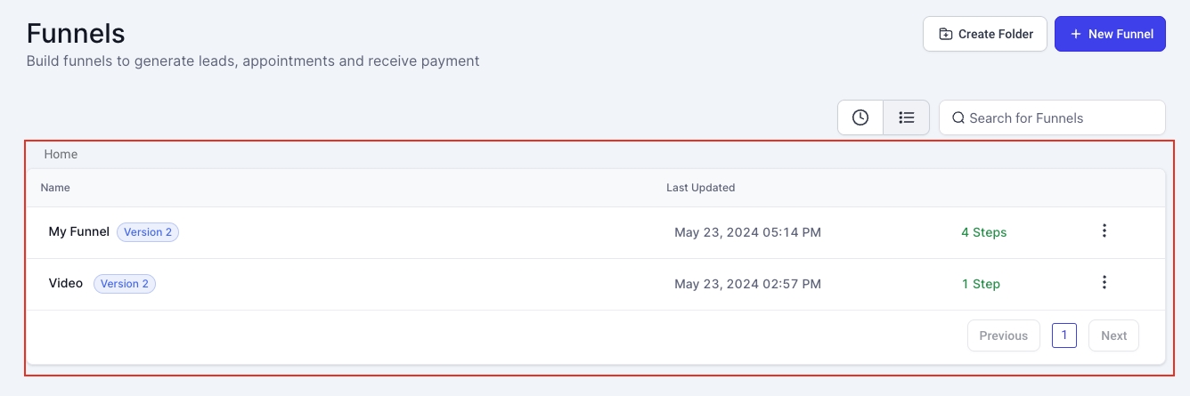 Create a new funnel from scratch or using an existing template. If you already have a funnel you would like to personalize, open the funnel editor by clicking the name of the funnel.