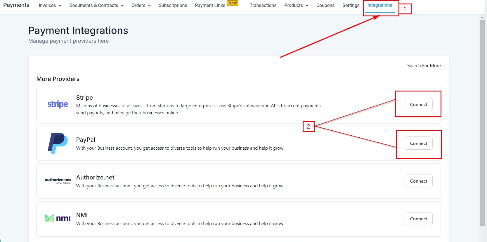 Before adding products to your funnel, you must first integrate your CRM account with a payment processor. Here's how: