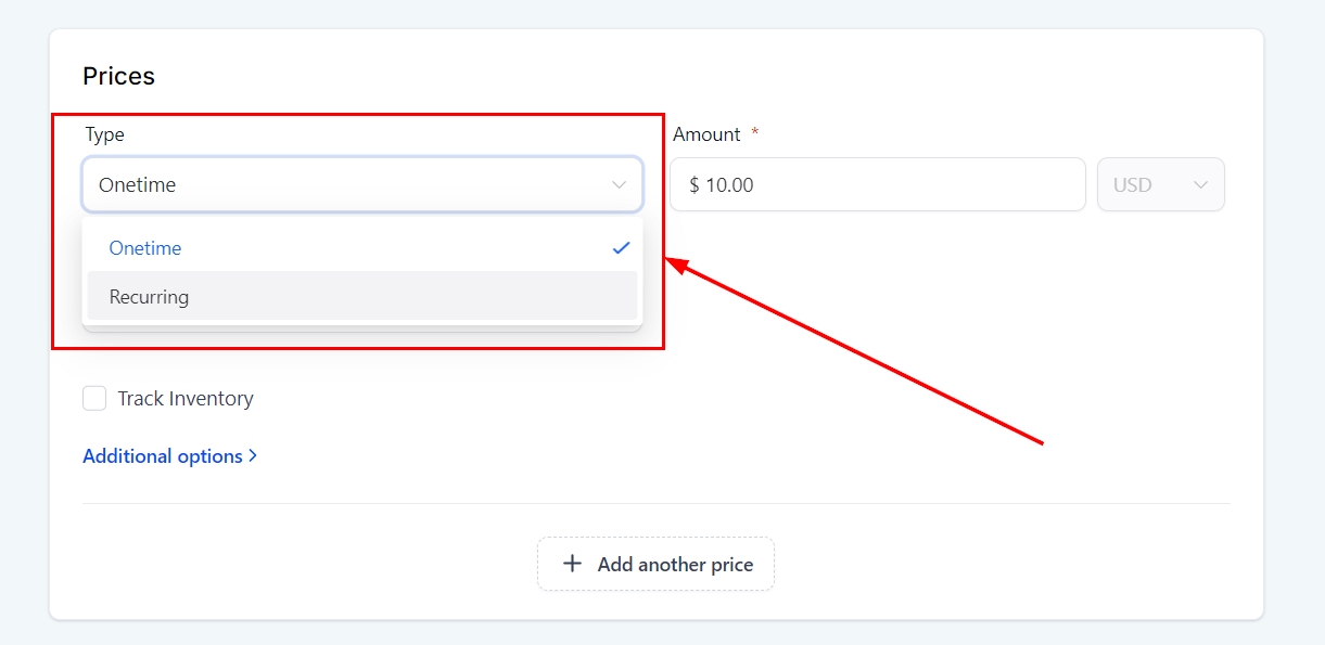 4. Set your pricing options, choosing between one-time or recurring payments.