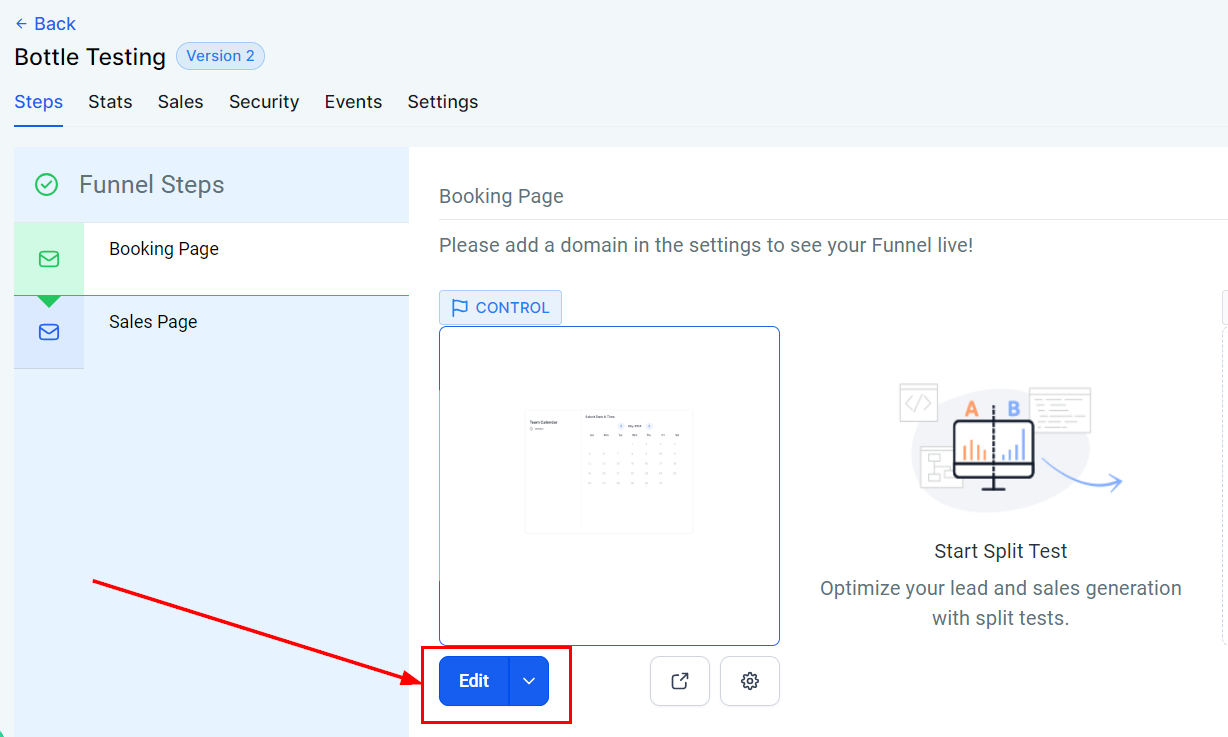 Select the funnel where you wish to add a video, then access the editor of the step where the video element is to be added.