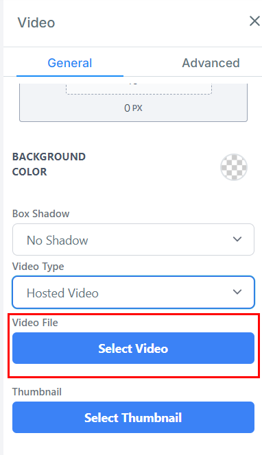 Click on Select Video to open your Media Library. If your video isn't uploaded yet, you can do so at this stage.