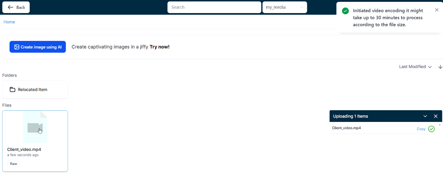 2. After uploading, double-click on your video to encode it, ensuring it's optimized for web playback.