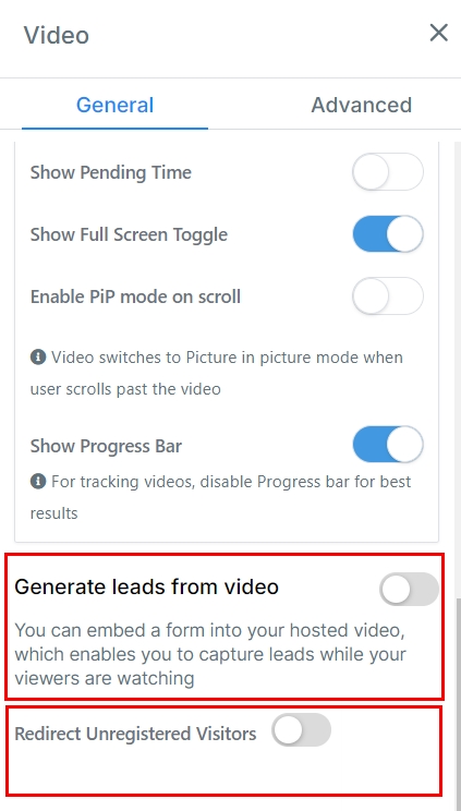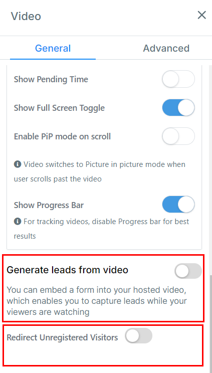 Lead Generation: Activate the “Generate Leads from Video” option to show a form at a specific time during the video playback, capturing leads directly.