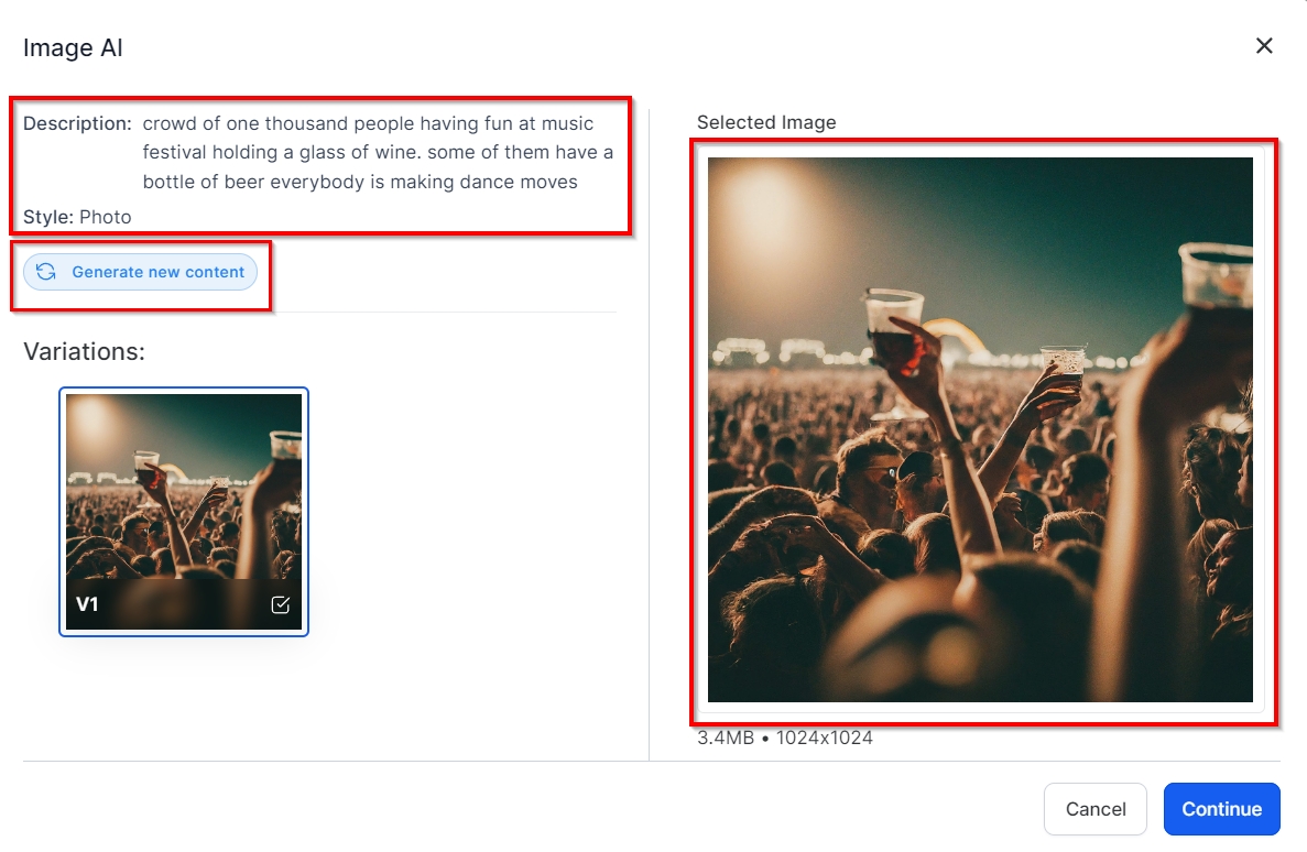 Save or Cancel: If you're satisfied with an image, click "Continue" to save it to your Media Library. If not, click "Cancel".