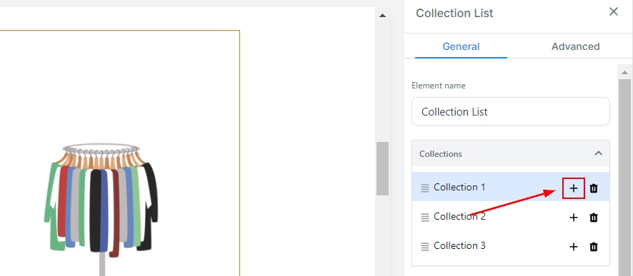 To set the collections you want to show click on the lines icon next to the collection. This will give you a small drop-down menu to select from your collections.