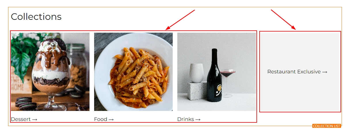 Your Product Collections let you group your products for more exposure, generating more demand and interest in your brand. Leverage that power inside of your store by adding the Collections List Element.