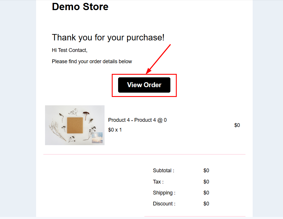 Once enabled, customers will receive an email with a "View Order" button after each successful order, which directs them to the Customer Access Center.