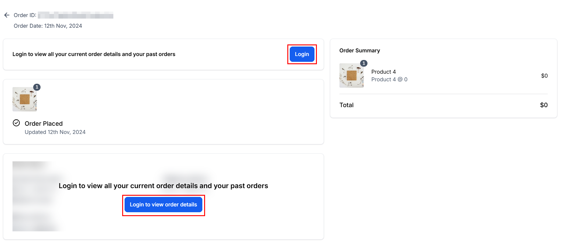A portal with their current order details will be displayed. To view further order details and review past purchase history, your customer will need to click the Login button.