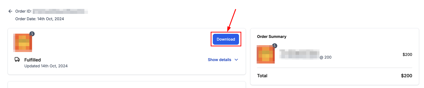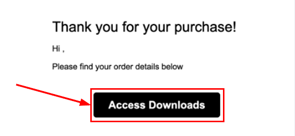 After completing the checkout process, customers will receive an Order Confirmation Email that includes an "Access Downloads" button to retrieve their digital files if the Enable Order Confirmation Email toggle is activated in Payments > Settings > Notifications.