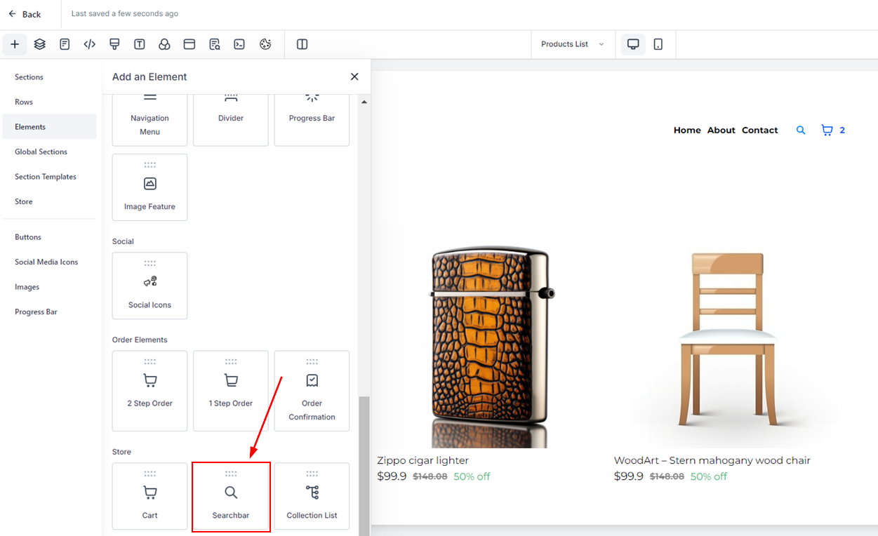 If you can't see the element make sure the website is set as a store. If it isn't already activated please do so, you can check our article “Setting Up An E-commerce Store” for instructions on how to do it.