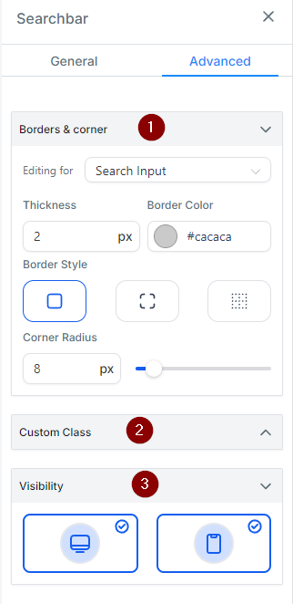 Color Options: Customize the colors of your Search Bar, everything from the background, to the text and icon colors can be changed here.