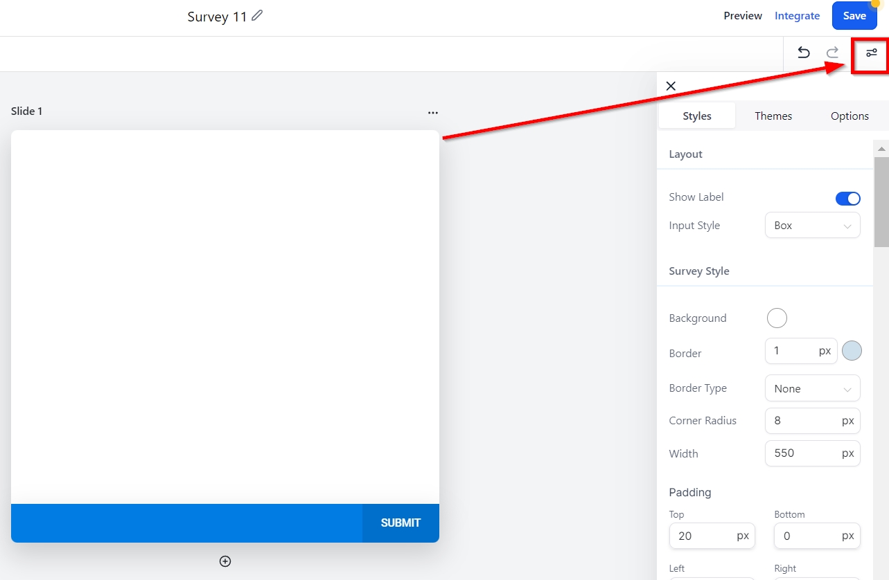 Change the appearance of the survey by using different styles, themes, and advanced options.