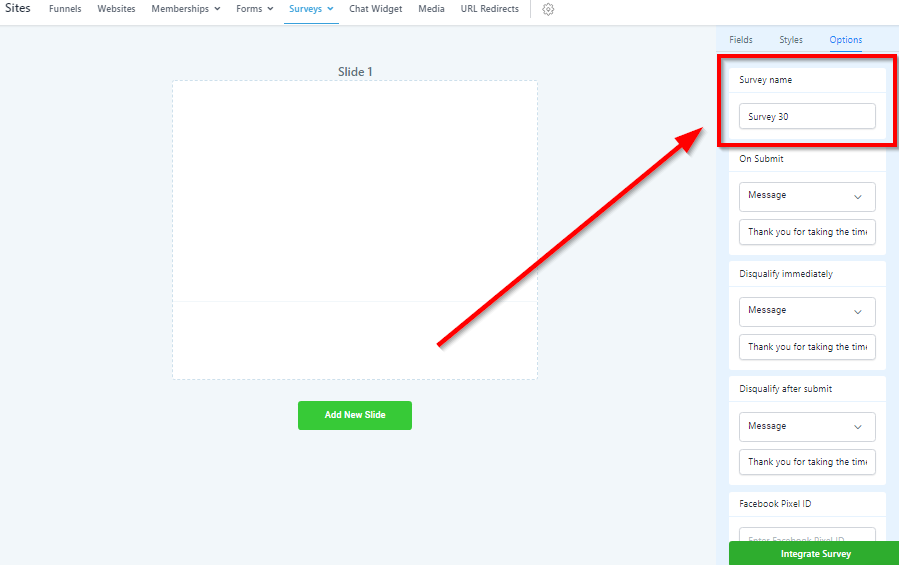 Change Survey Name