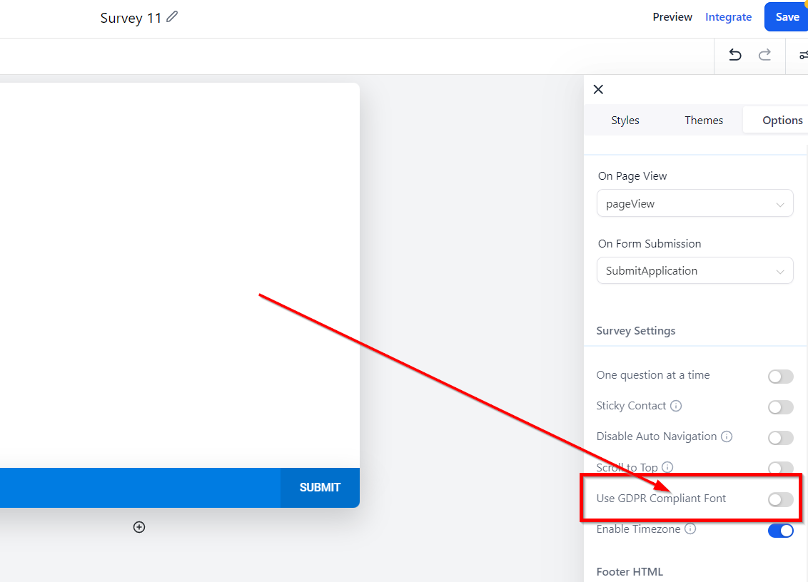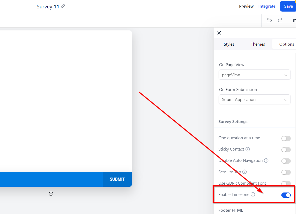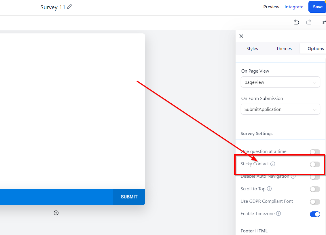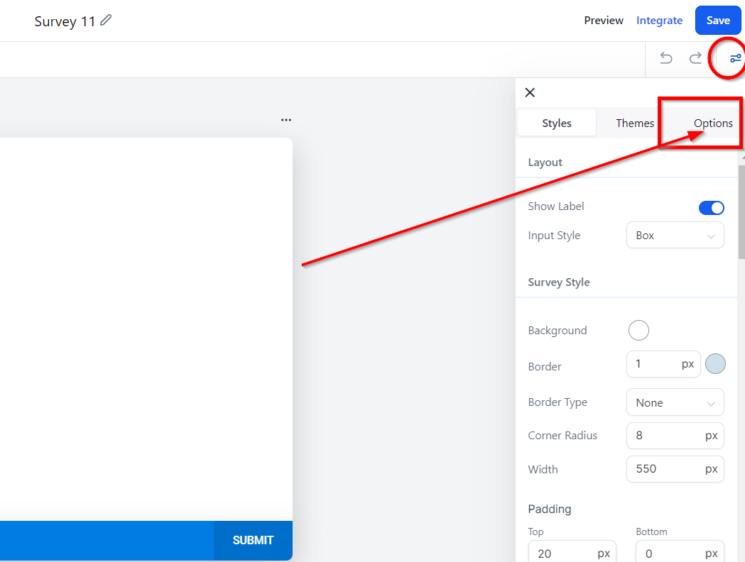 Survey Options Tab