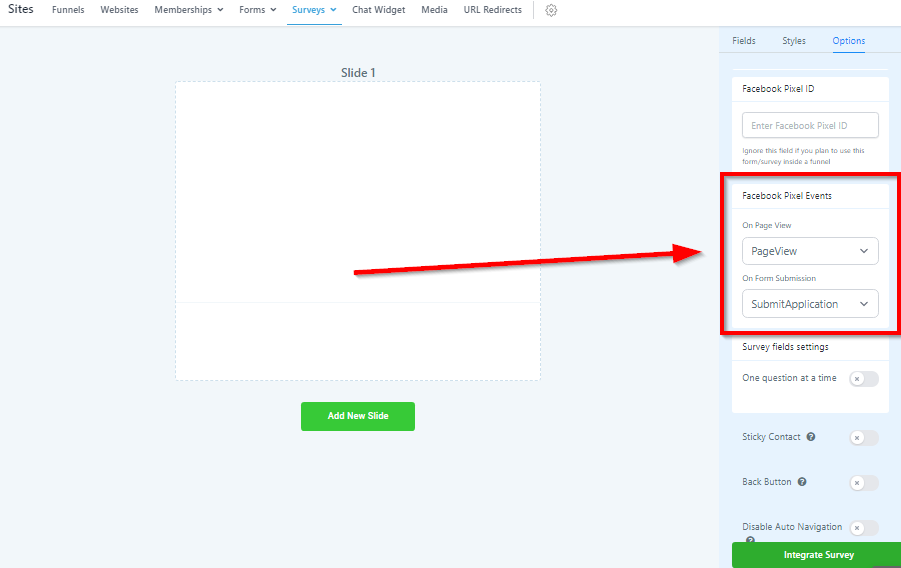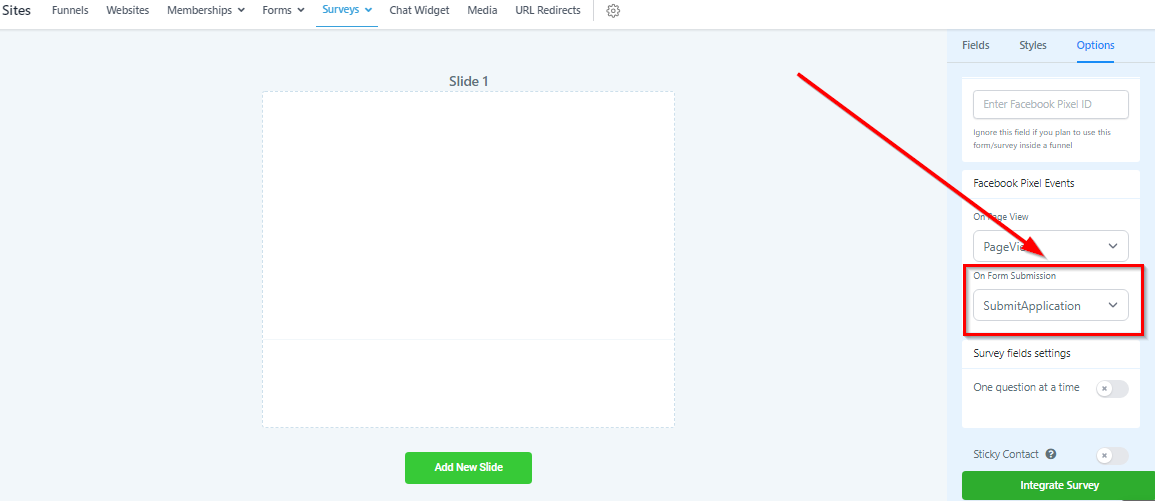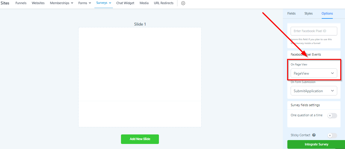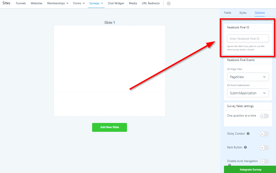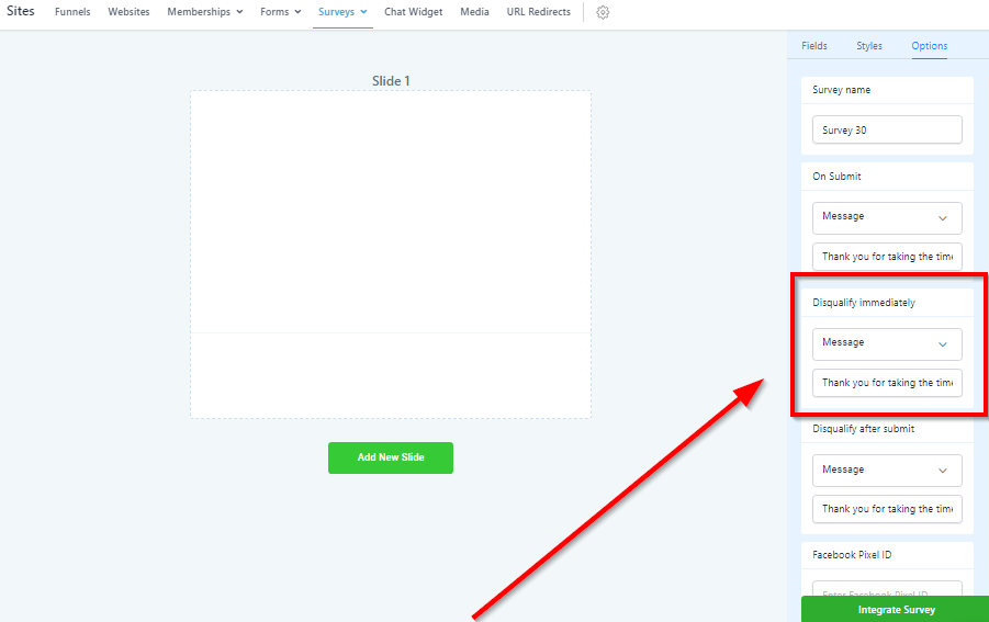 Survey Options Tab