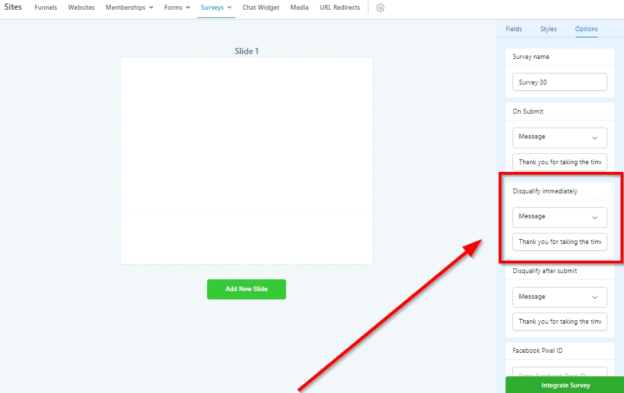 When building your survey, you have the option to "Disqualify Immediately" when a visitor chooses a specific answer. This is very valuable when qualifying leads.