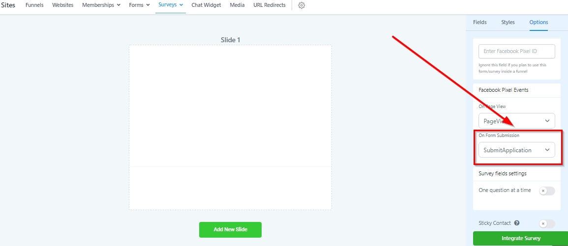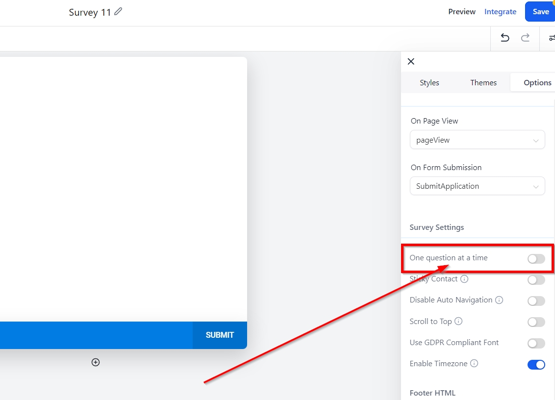 Toggling this setting "On" will make it so you only show 1 survey question to the visitor per slide. They will need to answer that question to see the next question.